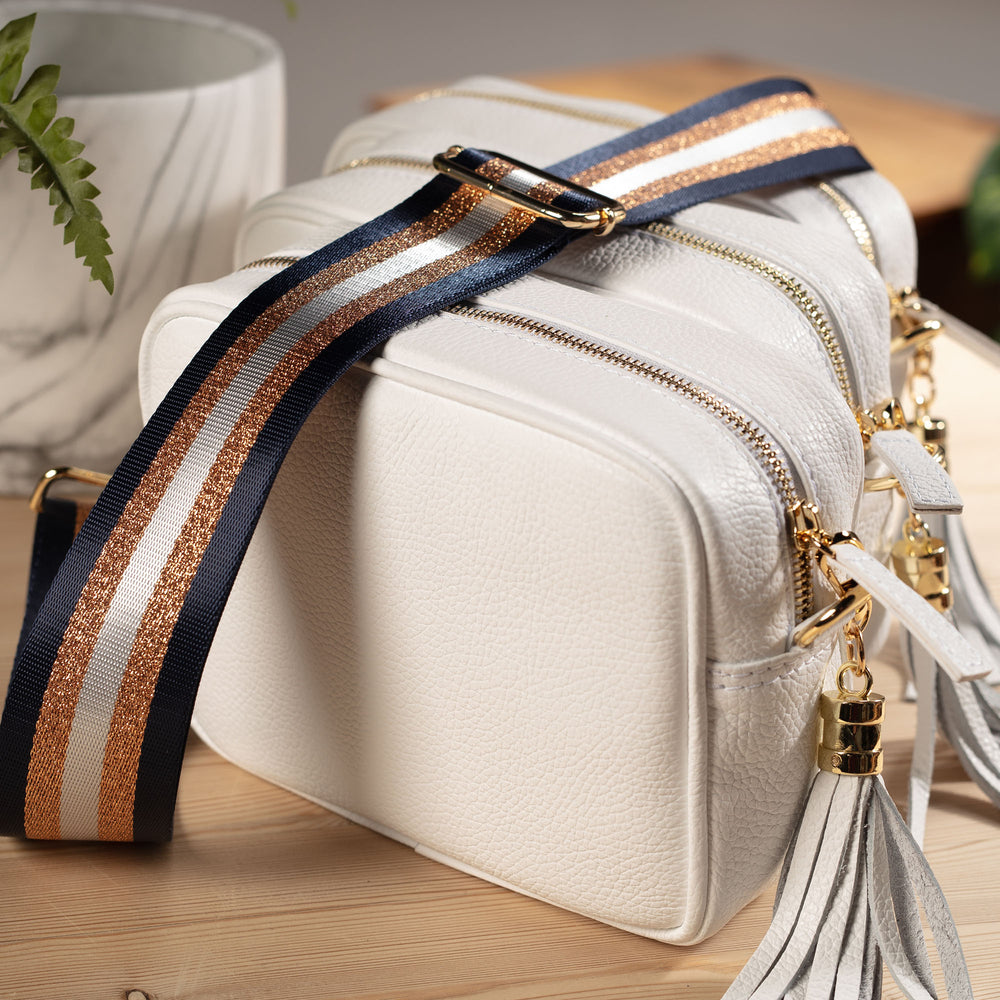 The perfect size handbag from Shopping around town, through to a night out, our Crossbody bags are fully customisable with our patterned straps to suit your look. Hand-finished and made in Italy from premium grained genuine leather our crossbody shoulder bags bags feature subtle gold fittings and our own matching leather tassel. More info