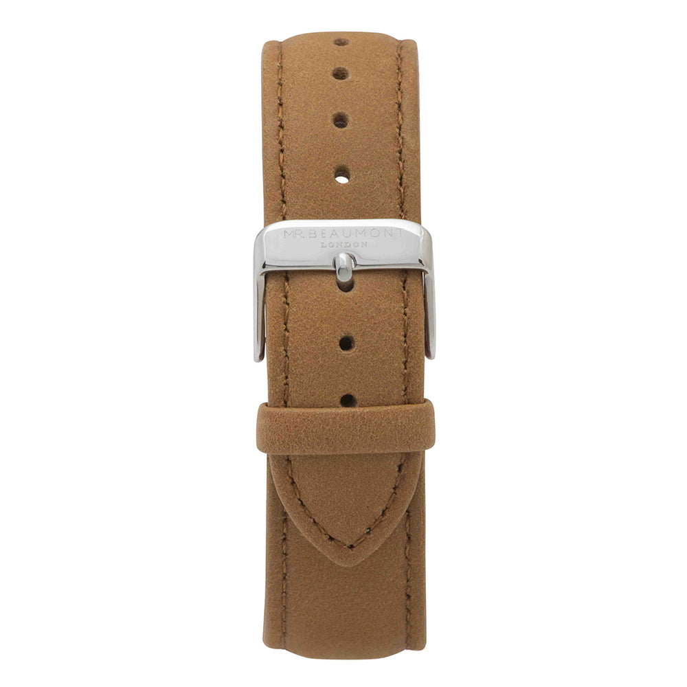 Instantly change the look of your watch or replace your old strap with this authentic Mr Beaumont Tan leather strap subtly engraved with the Mr Beaumont logo on its silver buckle.