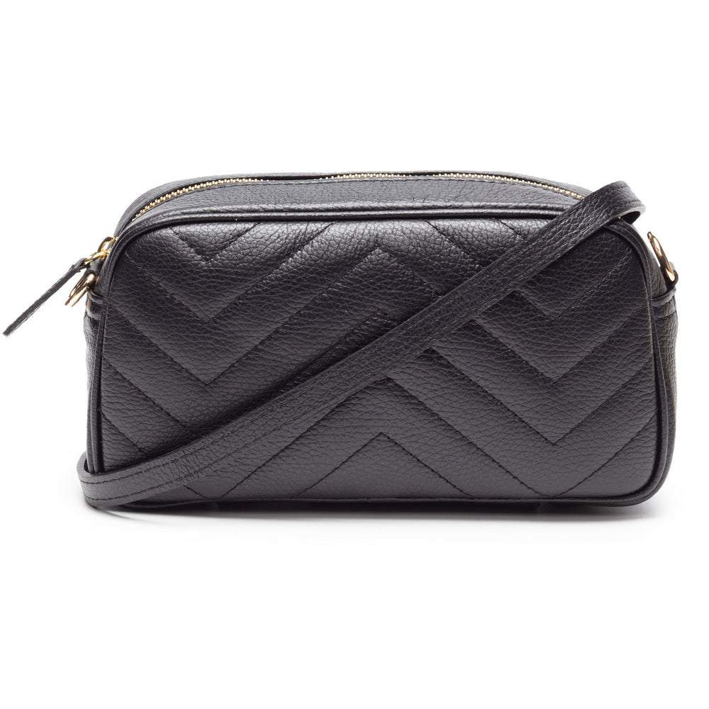 Hand finished from premium grained genuine leather and embelished with quilted chevrons, the bags feature subtle gold fittings in a softly structured body providing an elegant stylish shape no matter how full you make it.