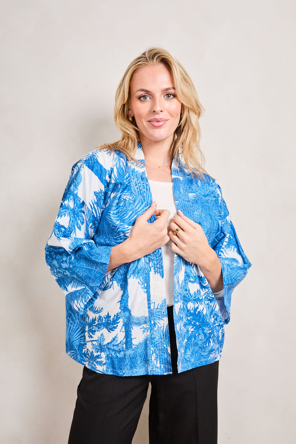 The Serendipity 100% Natural Cotton Kimono Jacket is perfect to dress up any outfit, or simply over your favourite T-shirt and jeans for a chic smart-casual look. The beautiful blue palms create a stylish winter design for the perfect on trend fashion garment this season. More info